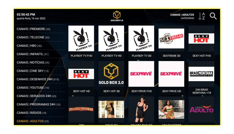 + 2000 Canais Abertos e Fechados.